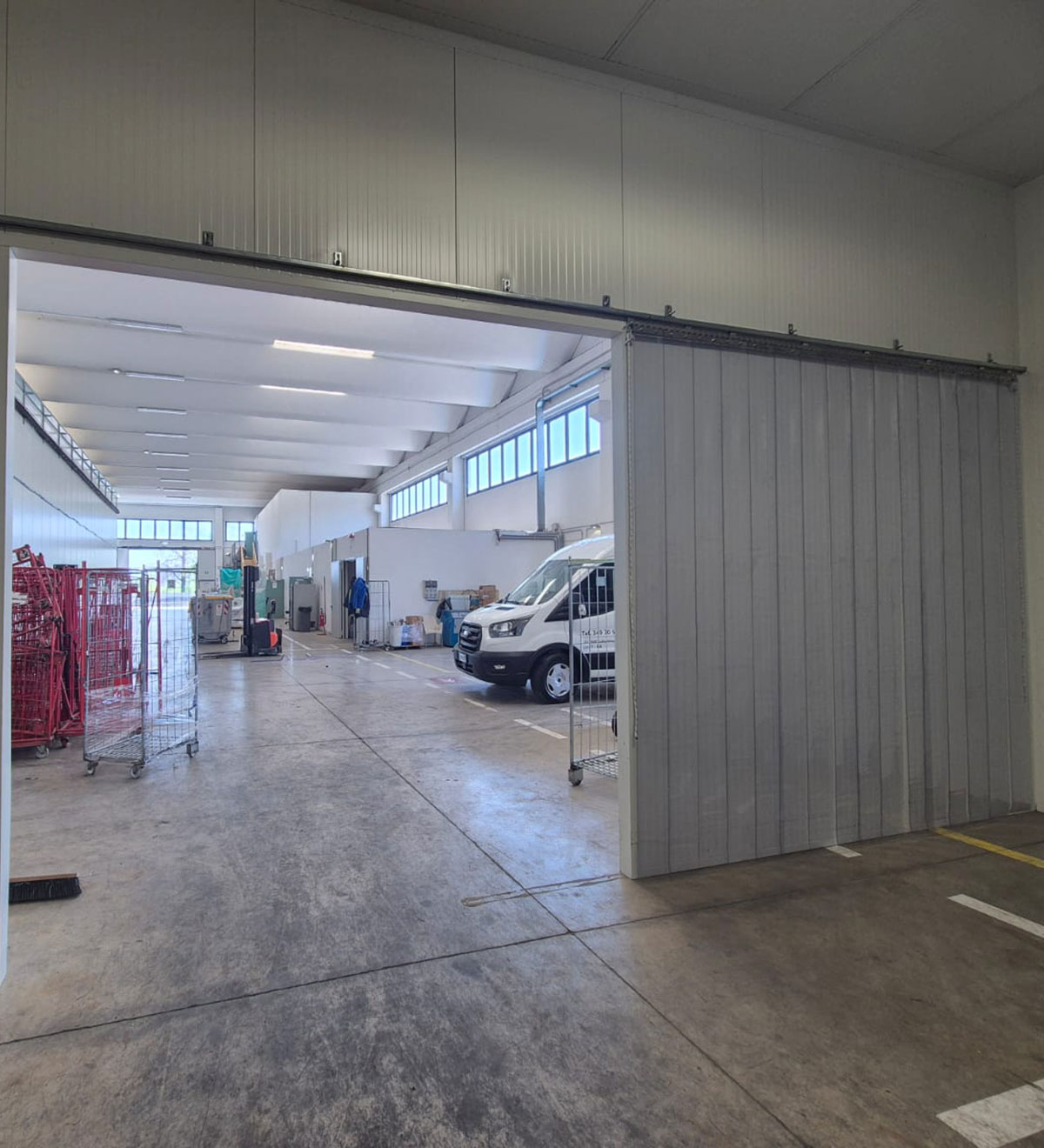 Le bandelle in PVC rappresentano una soluzione ideale per la chiusura flessibile e modulare di celle frigorifere, magazzini refrigerati e ambienti con elevato traffico pedonale o carrellato.